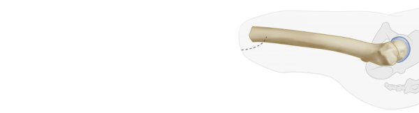 BADAL X™ implant OFI-C (curved) is used in cases with femur remnants longer than 140mm, measured from the mid-line of the lesser trochanter to the tip of the femur. In these cases the diaphyseal part of the femur makes a small curvature in the sagital plane which requires a curved implant.