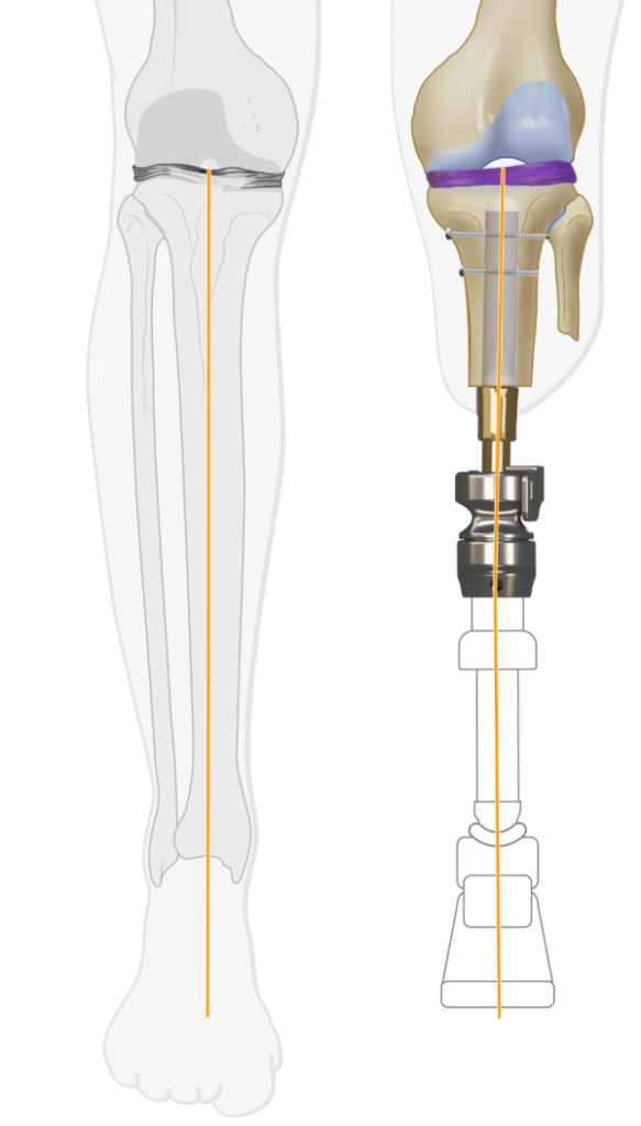 Preferably a certified prosthetist is required to attach the prosthesis, adjust the length and align the prosthesis in the frontal and sagital planes. Components (knee/foot) from the existing socket prosthesis are used to attach to the BADAL X™. No specific prosthetic components are required to be used in combination with BADAL X™. It is important to pay attention to the varus/valgus alignment in the frontal plane to avoid knee pain that may arise as a result of uneven knee load