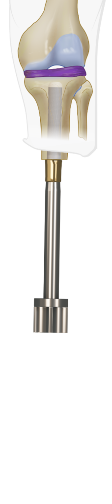 Use the Rigid Reamers on the T- handle to carefully ream the intramedulary canal of the tibia under constant alternating AP and sagital Xray image guidance and aim the Rigid Drill at the intercondylar eminentia. Reaming is terminated at the rigis reamer diameter equal to the diameter of OTI stem selected in the pre-surgical plan. Note that the diameter of the selected OTI stem is equivalent with the diameter of the last used Rigid Reamer to obtain optimal press-fit fixation